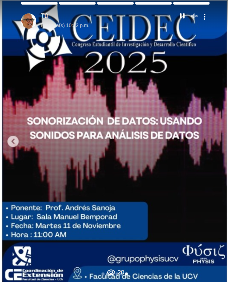Grupo de Sonorización de Datos de la UCV. Exploramos la intersección de la ciencia, el sonido y el arte digital para una nueva forma de comunicación.